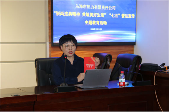 為了更好地普及法律知識,總結公司“七五”普法工作,進一步提升公司職工的法律意識,12月31日下午,烏海市熱力有限責任公司開展“崇尚法典精神 共筑美好生活”“七五”普法宣傳主題教育活動。熱力公司領導班子成員、環(huán)節(jié)干部、機關全體工作人員、窗口全體工作人員、分公司客服人員近100余人參加活動,活動特邀烏海市濟海侓師事務所楊海嵐律師做民法典重點內容解讀。