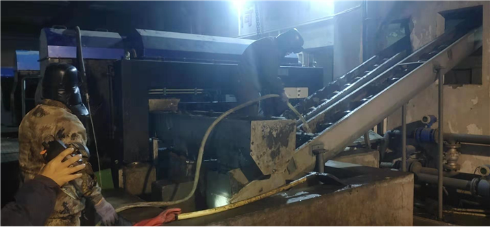 1月5日上午,因設(shè)備超負(fù)荷運(yùn)行,污泥處理系統(tǒng)斜螺旋再次發(fā)生斷裂,無法正常使用,為保證生產(chǎn)正常運(yùn)行,機(jī)修段全體人員再次頂著嚴(yán)寒,全力搶修,更換新的污泥處理系統(tǒng)斜螺旋,努力保證污泥處理系統(tǒng)安全穩(wěn)定運(yùn)行。
