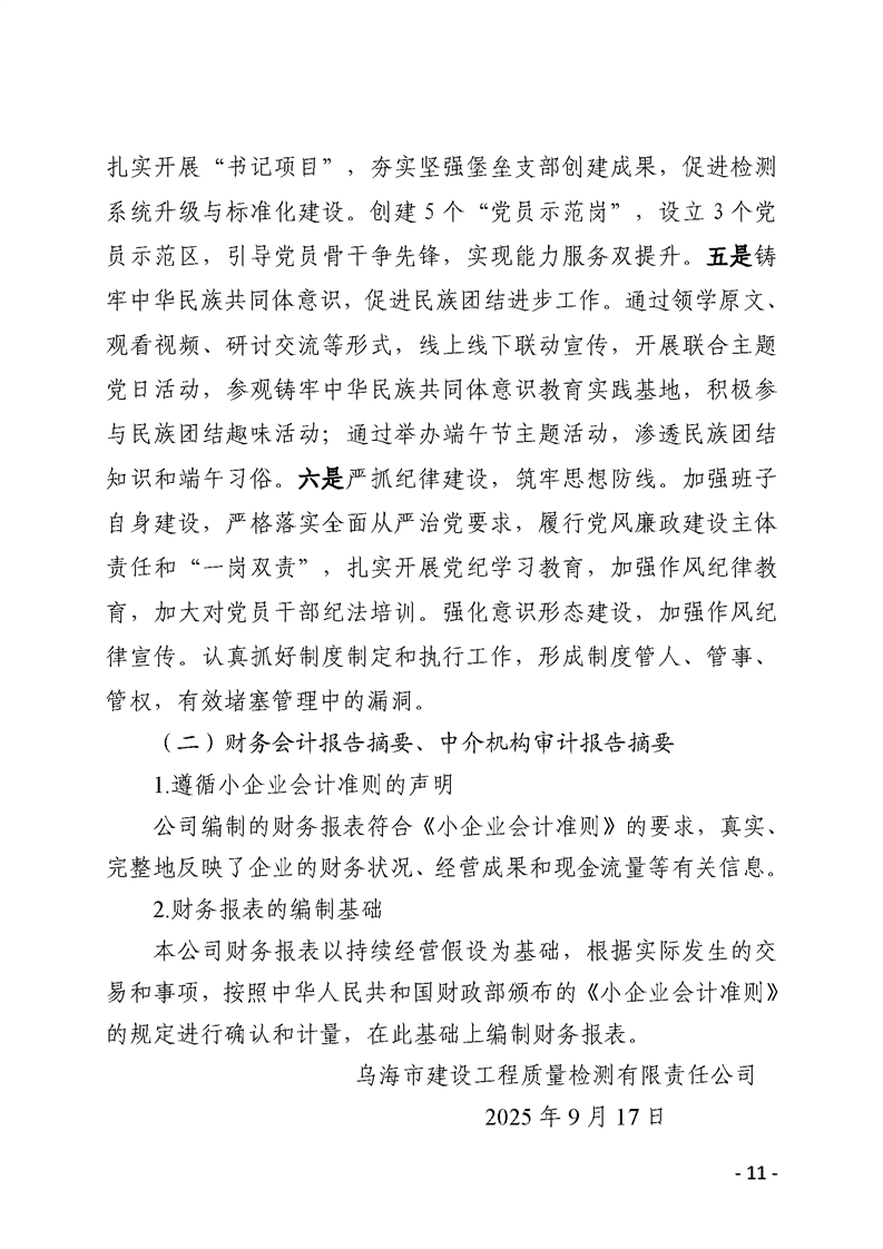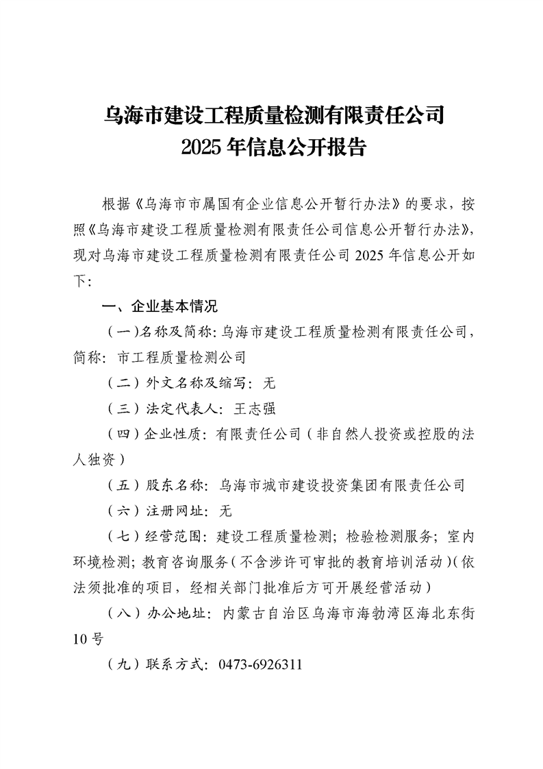 烏海市建設(shè)工程質(zhì)量檢測(cè)有限責(zé)任公司2025年二季度信息公開(kāi)