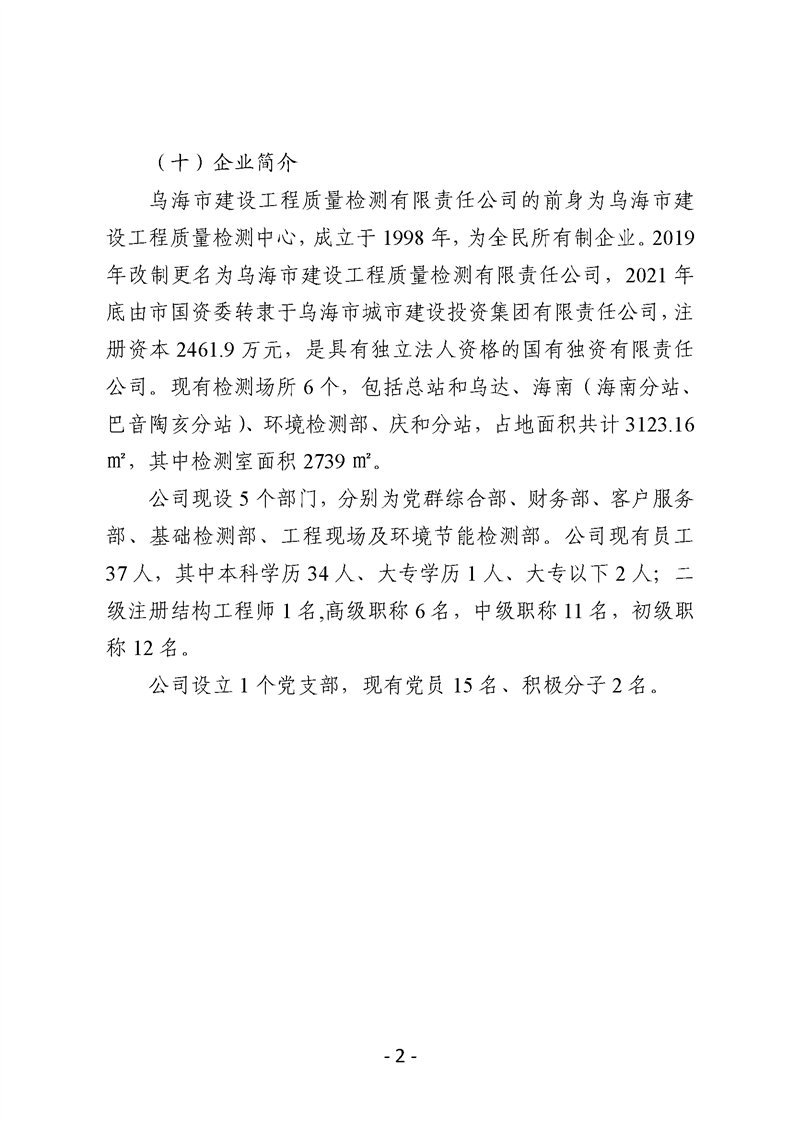 - 2025-03-10烏海市建設(shè)工程質(zhì)量檢測(cè)有限責(zé)任公司2024年度信息公開報(bào)告