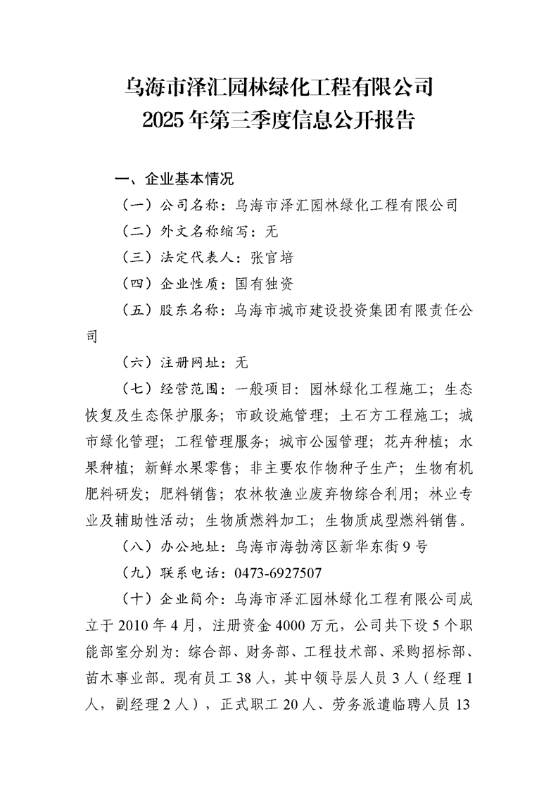 - 2025-07-28烏海市澤匯園林綠化工程有限公司2025年第二季度信息公開
