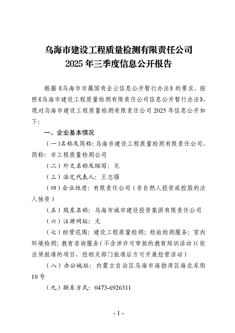 - 2025-04-22烏海市建設(shè)工程質(zhì)量檢測有限責(zé)任公司2025年一季度信息公開