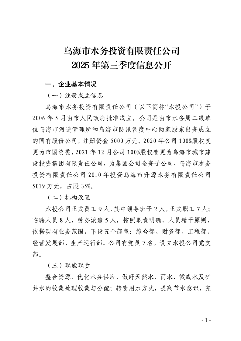 - 2025-04-22烏海市水務(wù)投資有限責(zé)任公司2025年第一季度信息公開(kāi)