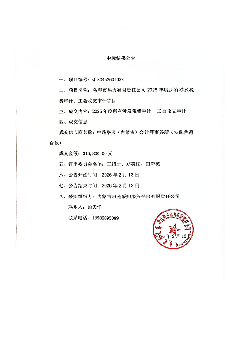 - 2026-03-132026年烏海市澤匯園林綠化工程有限公司育花溫室勞務(wù)中標(biāo)(成交)結(jié)果公示