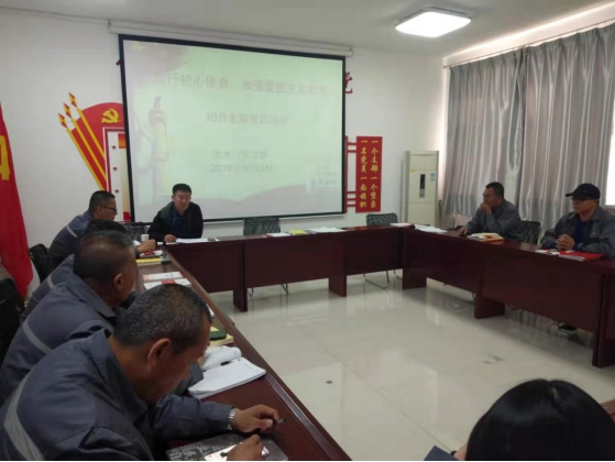 按照《關于在市國資系統(tǒng)基層黨組織中開展“踐行初心使命,加強愛國主義教育”主題黨日活動的通知》要求,為激發(fā)廣大黨員干部的愛國熱情,凝聚奮進新時代的磅礴偉力,使愛國主義成為黨員干部的堅定信念、精神力量和自覺行動,10月24日,城市供水公司開展“踐行初心使命,加強愛國主義教育”主題黨日活動。五個基層黨支部分別完成奏唱國歌、重溫入黨誓詞、誦讀黨章、繳納黨費規(guī)定動作后,黨委委員在所在支部解讀《深入學習貫徹習近平總書記考察內(nèi)蒙古重要講話精神宣傳提綱》并組織黨員開展豐富多彩的主題黨日活動。